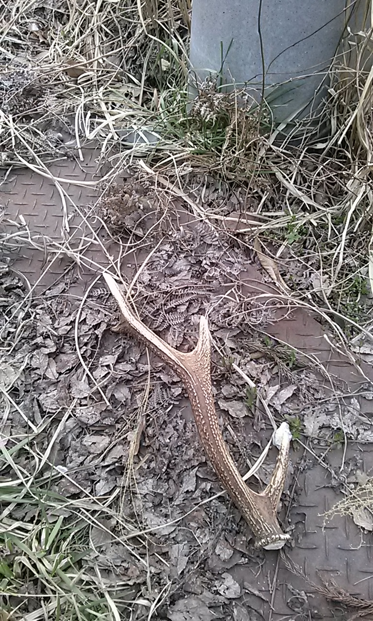 野生の鹿の角がポロリと取れて落ちていました!(しかも1本だけ・・・)