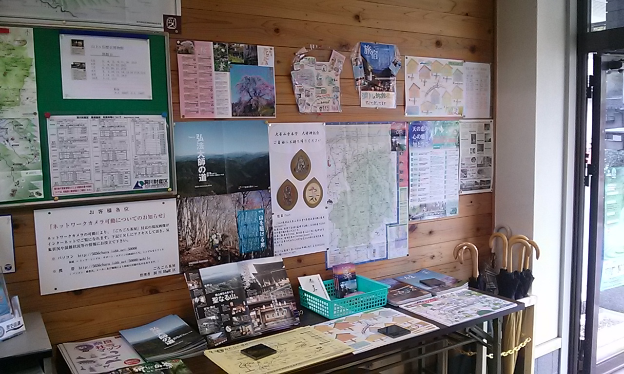 さまざまなパンフレットやマップ、奈良県南部の大きな地図も置いています。